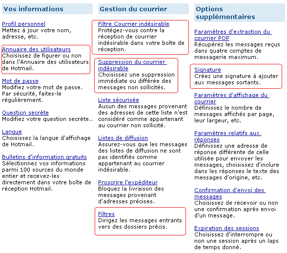 Encadrées en rouge, les principales options à consulter et à paramétrer